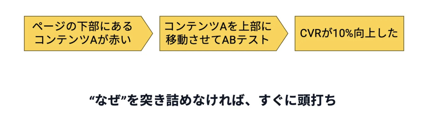例えば、従来のヒートマップで「赤い(注目されている)コンテンツ」を特定し、それをページ上部に移動させてコンバージョン率(CVR)が向上したというケースはよくあります。これは改善の初動としては有効ですが、その改善が「なぜうまくいったのか」という本質的な理由(Why)まで深く考え、言語化できていないと、次の施策のアイデアが尽き、改善活動がすぐに頭打ちになってしまうのです。
