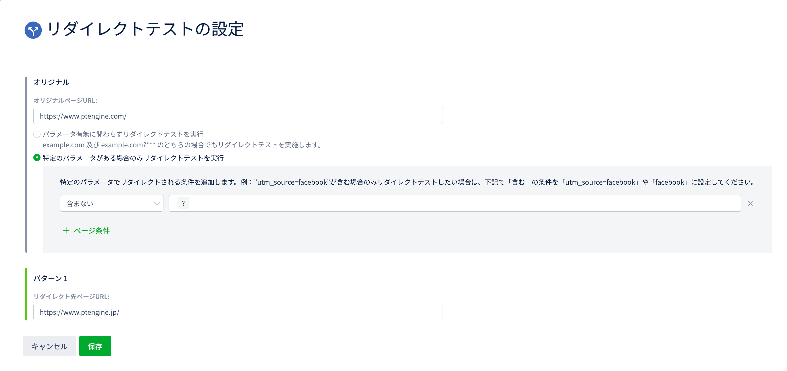 | https://www.ptengine.com/ ?utm_source=google | ×(リダイレクトされない) |