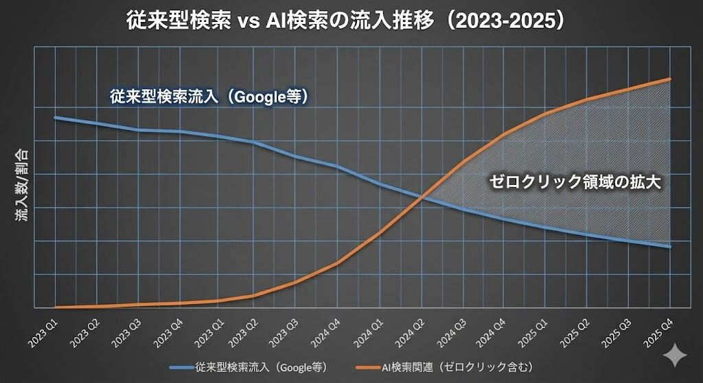 2025年現在、検索トラフィックの構造が根本から崩壊しつつあります。